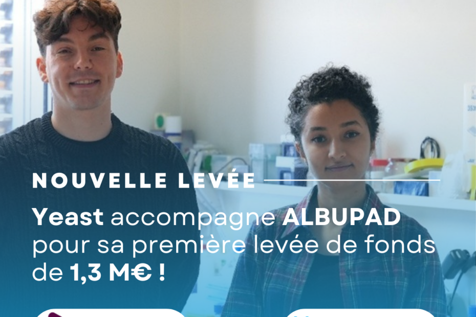 La startup strasbourgeoise ALBUPAD, fondée en 2024 par Eya ALOUI et Jordan BEURTON, lève 1,3 M d’euros auprès de Yeast, Alsace Business Angels et Bpifrance pour accélérer le développement de sa technologie : des prototypes prêts à être intégrés dans les pipelines pharmaceutiques. Sa mission : Développement de biomatériaux à base d’albumine révolutionnant la prise en charge des patients atteints de maladies chroniques et de cancers grâce à des dispositifs permettant… Lire la suite »YEAST soutient ALBUPAD : Révolutionner la libération des médicaments pour les maladies chroniques et le cancer !